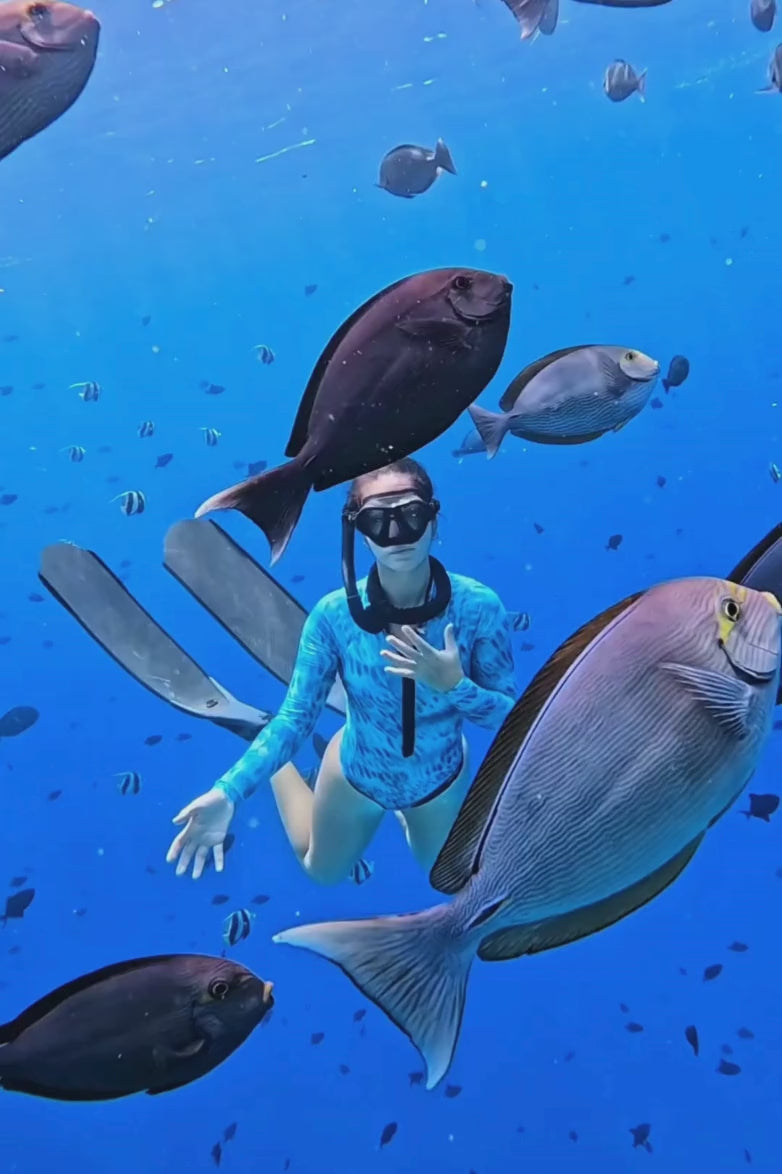 Bañador Surf Manga Larga Tiburón Tigre - Tonos Turquesas